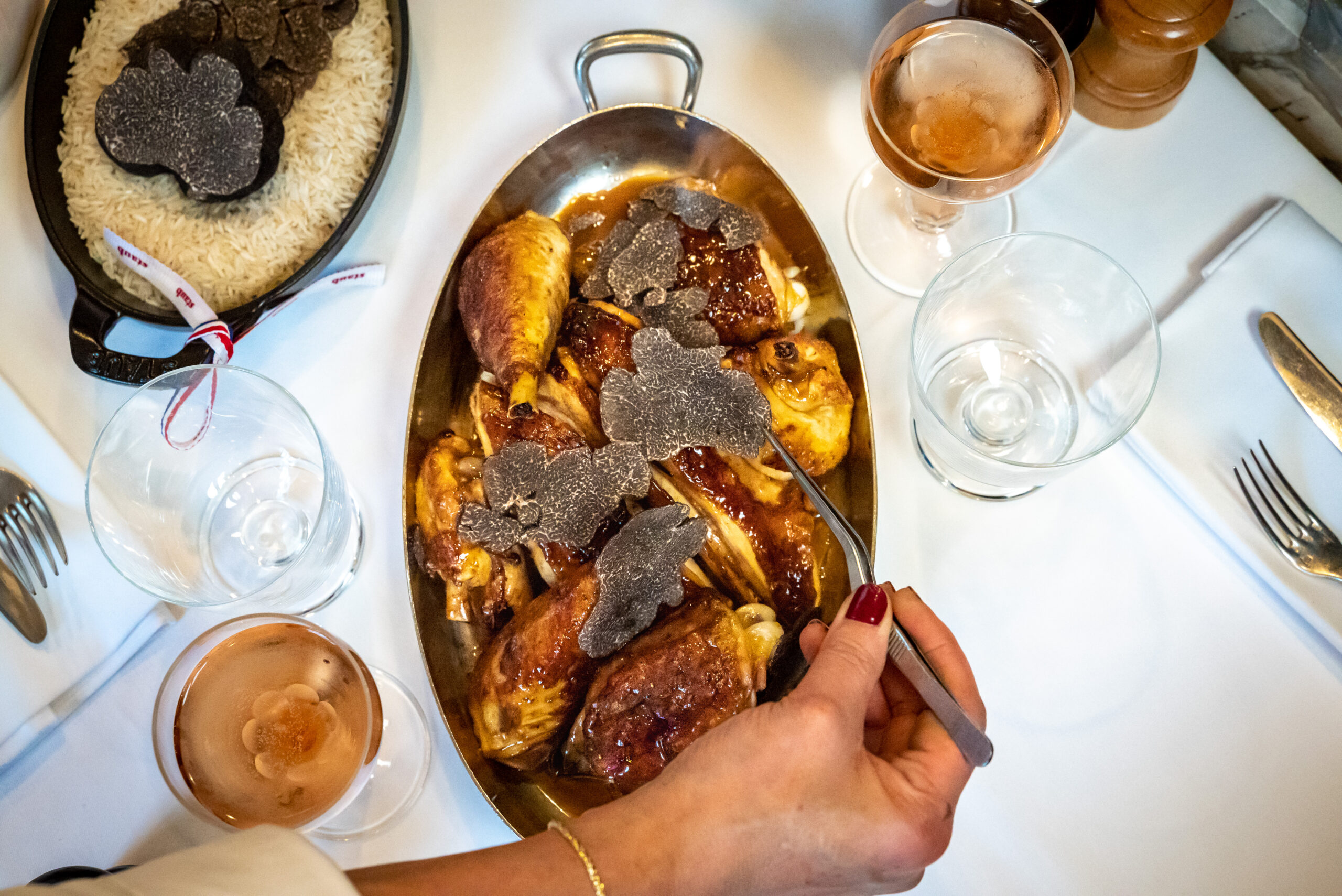 Chaque année, lorsque les fêtes se dessinent, Allard vibre d’une atmosphère encore plus chaleureuse qu’à l’habitude. Boiseries sombres, banquettes rouges et miroirs patinés composent, comme toujours, un décor où l’on aime se retrouver. Il y a quelque chose de presque intemporel dans notre bistrot : un lieu chargé d’Histoire – et de petites histoires – où les conversations se mêlent au parfum des plats qui mijotent, où la générosité de l’accueil compte autant que la qualité des produits. C’est dans cet esprit authentique que nous proposons cette année des suggestions spécialement imaginées pour les fêtes de fin d’année. Une parenthèse gourmande, simple et sincère, pensée pour célébrer Noël dans un bistrot historique. Du 15 au 30 décembre, certains de nos classiques prennent une tonalité festive. Si vous pensez réserver une table chez Allard nous vous présentons ici quelques mets et vins spécialement sélectionnés pour rendre cette fin d’année mémorable. Une suggestion festive et gourmande À l’approche des fêtes, nous tenons à préserver ce qui fait l’identité de notre restaurant : une cuisine de bistrot sincère, nourrie par la tradition, mais toujours attentive au plaisir du moment, sans démonstrations ni artifices. Nous aimons par-dessus tout proposer des plats qui ont du caractère, cuisinés avec la plus grande minutie et servis dans une ambiance qui invite naturellement au partage. Alors pour ces fêtes de fin d’année, un produit s’est imposé comme une évidence : le bœuf Rossini, accompagné d’une purée de pommes de terre à la truffe. Une assiette emblématique de la saison, généreuse, rassurante, où la précision des cuissons et la qualité de la viande sont essentielles. Nous l’avons pensé dans la plus pure tradition, avec une touche festive qui se joue au tout dernier moment : une râpe de truffe réalisée directement en salle, au moment du service. Un geste simple mais élégant et précis, qui permet à chacun, selon son envie, d’intensifier l’expérience grâce à un supplément truffe proposé au gramme pour apporter à ce classique une dimension véritablement saisonnière et festive. Entre le 15 et le 30 décembre, ce bœuf Rossini remplacera exceptionnellement le plat de bœuf habituellement au menu du restaurant Allard. Une façon de marquer cette période si particulière et d’offrir à nos convives un moment encore un peu plus spécial, sans quitter l’esprit bistrot qui nous définit. Nous avons pensé cette suggestion comme une manière d’amener l’esprit de Noël à table : un plat généreux, des saveurs franches et des produits d’exception cuisinés avec simplicité et gourmandise. Un « bistrot de fête » à la fois chaleureux et élégant. Un endroit où l’on se sent bien, tout simplement. Une sélection de vins au verre spécialement pensée pour Noël Pour accompagner ces suggestions, notre sommelier a imaginé une sélection éphémère de vins au verre, pensée exclusivement pour les fêtes. Une carte resserrée, choisie avec soin, réunissant des références retenues pour leur capacité à sublimer un moment ou un plat précis. On ouvre ce parcours avec un champagne Ruinart « R », une cuvée que notre sommelier aime présenter comme une véritable entrée dans les fêtes. Généreuse, lumineuse, avec ce caractère pétillant qui annonce d’emblée un repas placé sous le signe de la célébration. Proposé à la coupe au prix de 30 euros, ce grand champagne apporte à table un esprit tout particulier : celui d’un début de repas élégant et joyeux. Nous avons sélectionné ensuite un Puligny-Montrachet du Domaine de la Vougeraie, millésime 2023. Un blanc aux lignes précises, d’une élégance rare, que notre sommelier décrit volontiers comme un « sanctuaire des grands chardonnays ». Ce vin incarne ce que nous aimons partager à Allard : des domaines qui cultivent l’excellence sans ostentation, et une juste expression du terroir. Servi au verre au prix de 38 euros, il accompagne avec justesse une entrée, un plat en sauce, ou se savoure seul, juste pour le plaisir d’un moment de dégustation. Enfin, pour prolonger l’expérience et accompagner notre bœuf Rossini, nous servons exceptionnellement au verre un Carillon d’Angélus 2016. Un vin profond, aux tanins soyeux, où les fruits noirs répondent à des notes de sous-bois. C’est un accord naturel, presque évident, qui permet de dialoguer avec la richesse et la puissance du Rossini. Ce rouge est proposé au verre pour la somme de 55 euros, une façon rare d’accéder à une cuvée habituellement servie à la bouteille et qui incarne, à elle seule, la délicatesse et la profondeur d’un grand vin de fête. À travers cette sélection, le vin se fait compagnon du plat et du moment. Offrir Allard : les bons cadeaux pour un Noël gourmand Pour celles et ceux qui souhaitent faire découvrir l’esprit d’Allard à leurs proches, nous proposons des bons cadeaux envoyés reçus directement par e-mail. Une idée originale pour un présent gourmand et élégant et une délicate attention pour ceux que vous aimez. Et l’occasion, surtout, de faire découvrir à votre famille, vos amis, votre moitié, un bistrot authentique, un service attentionné et une cuisine qui traverse les époques sans jamais perdre son âme. Nos bons cadeaux permettent de faire connaître une adresse où l’on se sent bien, où les plats racontent une histoire et où l’on prend le temps de savourer ce qui est sur la table, comme ce qui se passe autour. Ils sont également une façon élégante d’offrir un dîner gastronomique sans se tromper : un cadeau qui crée des souvenirs et qui laisse le choix du moment. Une manière simple de partager l’esprit de Noël, avec chaleur et bienveillance.